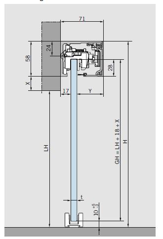 GH = hauteur de la porte, maximum: 3000mm