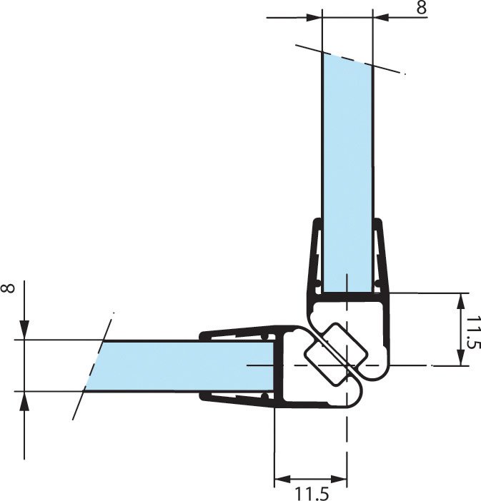 Assurent la fermeture entre deux parois vitrées en angle droit, à 90°.